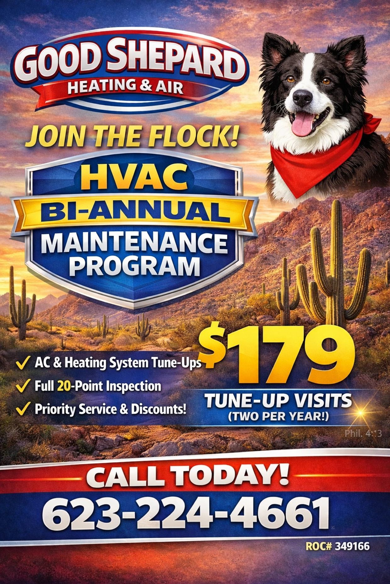 Each visit will include a 20 point tune up for each unit. Tune up points include: checking capacitor, contactor, compressor, condenser motor, thermostat, condenser coil, evaporator coil, refrigerant charge, temperature split, burners, blower motor, heat exchanger, ignition system, flame sensor, duct work, cleaning of condensing coil, tightening of all electrical connections, lubrication of parts as needed, gas leak inspection, and replace or clean air filter.
